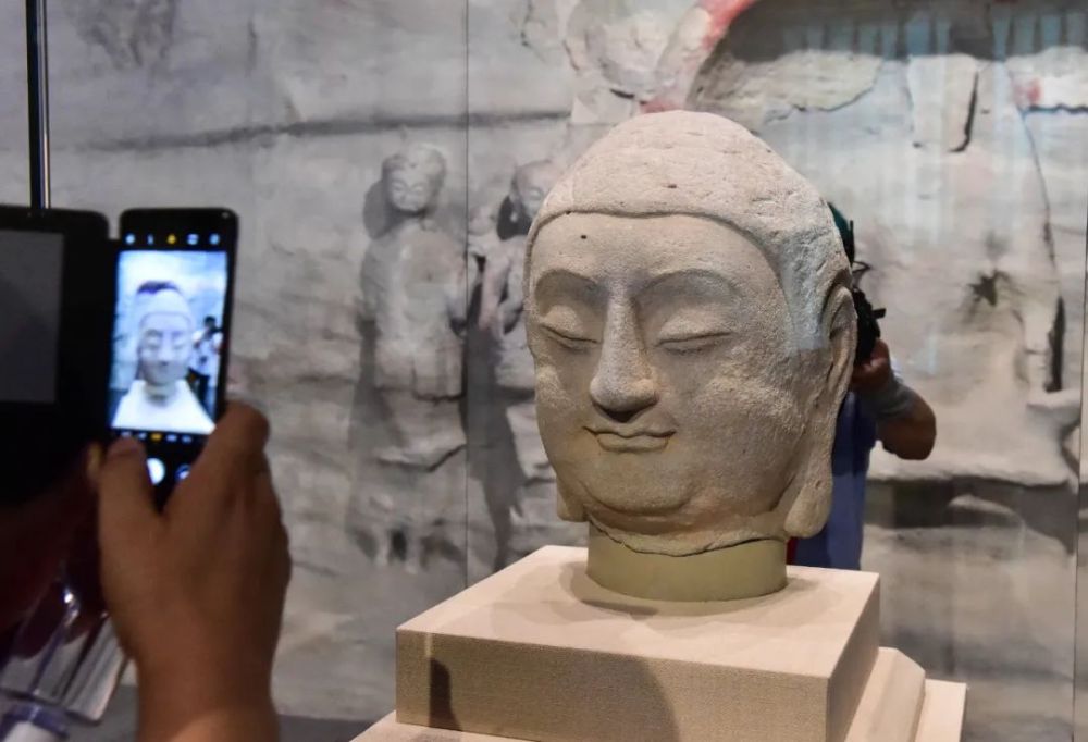 流失海外近百年的天龙山石窟“第8窟北壁主尊佛首”24日亮相在太原开幕的“复兴路上 国宝归来”特展,并将在此长期陈列展出。