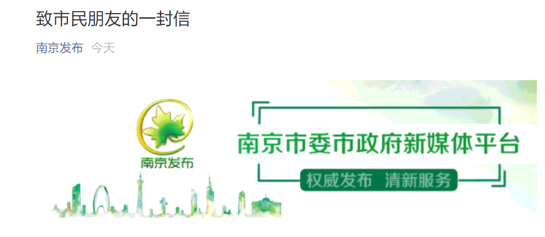 南京市发布《致市民朋友的一封信》,提出南京将强化小区管理,严格实行验码、测温、外来人员登记等措施,同时,进一步扩大流行病学调查范围。同时将全面加强封闭小区、集中隔离场所规范管理。全文如下: