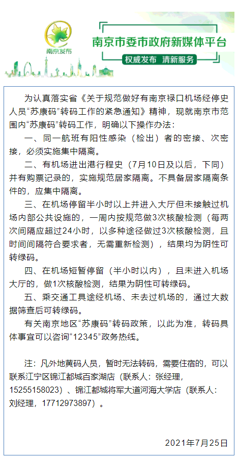 有关南京地区“苏康码”转码政策,以此为准,转码具体事宜可以咨询“12345”政务热线。
