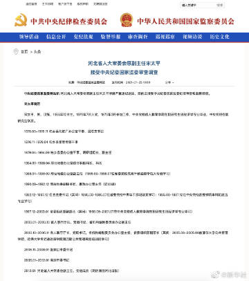 【河北省人大常委会原副主任宋太平接受中央纪委国家监委审查调查】据中央纪委国家监委网站消息,河北省人大常委会原副主任宋太平涉嫌严重违纪违法,目前正接受中央纪委国家监委纪律审查和监察调查。