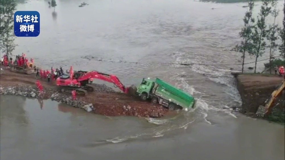 【最新进展!#直击卫河决口抢险# 】25日5至8时,卫河鹤壁浚县彭村段,救援队伍将满载石料的3辆重型卡车、1辆公交车推入决口处,减缓了水流速度,目前正在加固加高合龙处的新路。(记者尚昆仑、张浩然、姜亮) 新华社的微博视频