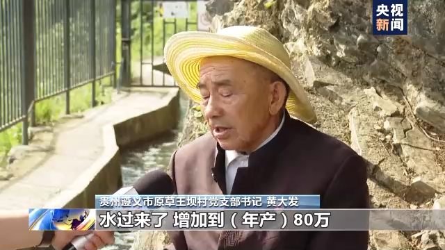 贵州遵义市原草王坝村党支部书记 黄大发:我们之前年产5万斤谷子,水过来了,增加到80万斤。老百姓有大米吃了,有水吃了,老百姓高兴,家乡变了。
