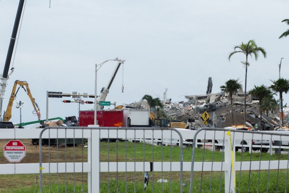这是7月6日拍摄的美国佛罗里达州迈阿密-戴德县的住宅楼坍塌事故现场。(新华社发 莫妮卡·麦克盖文摄)