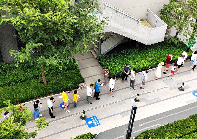 南京市以区为单位,分区组织、统筹设立核酸检测采样点,动员市民群众开展全员核酸检测,由社区组织分批错时前往采样点。