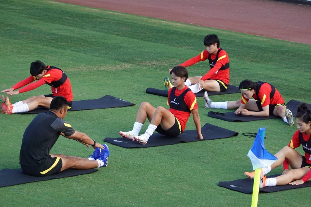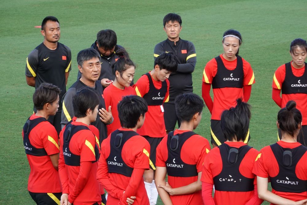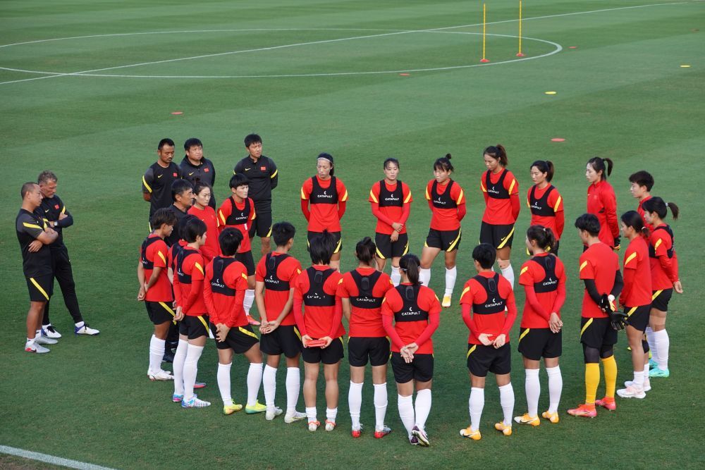 2021年7月25日,日本横滨,中国女足队员在训练中。新华社记者林昊摄