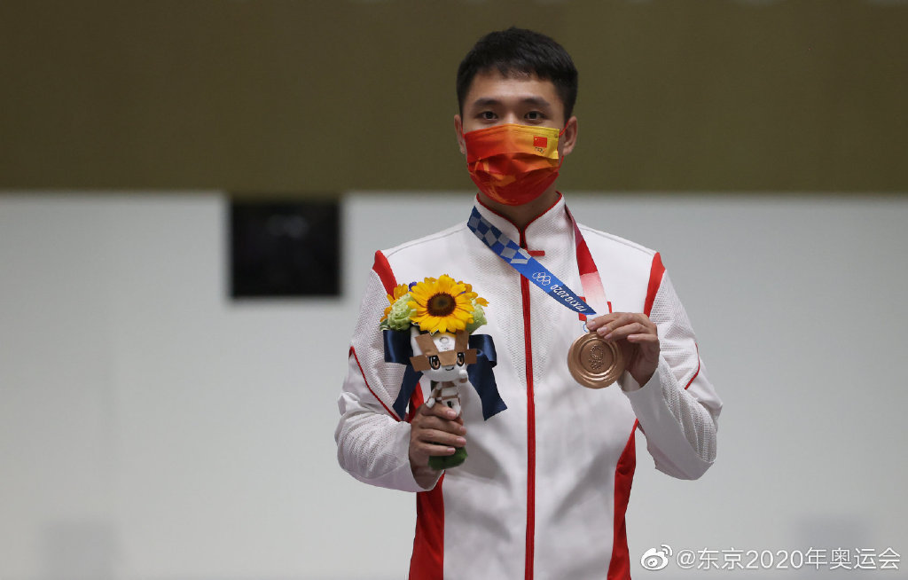 中国选手杨皓然以229.4环的成绩,摘得东京奥运会男子十米气步枪铜牌。