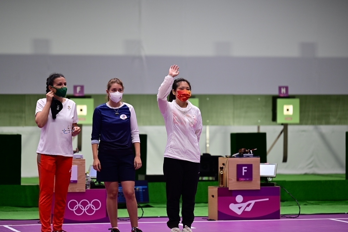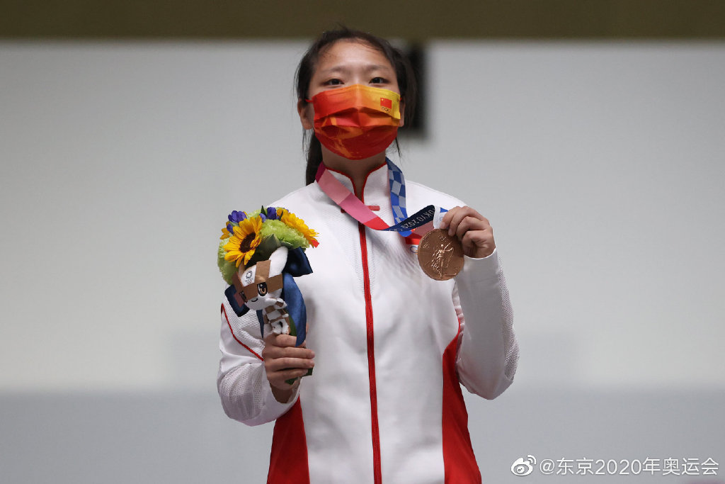 东京奥运会女子十米气手枪决赛中,中国选手姜冉馨以218.0环收获铜牌。