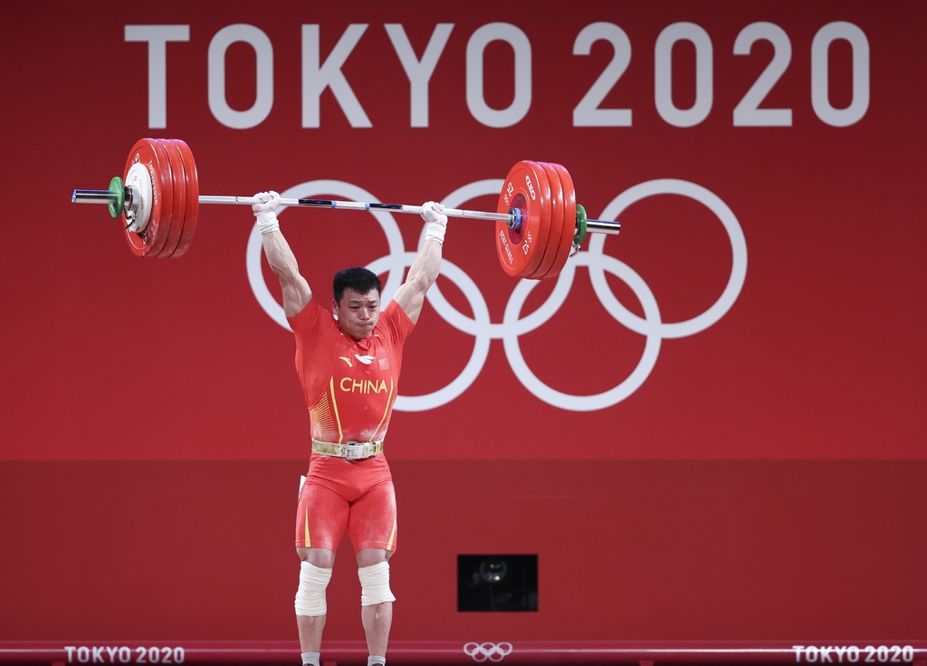 东京奥运会男子举重67公斤级比赛的现场沸腾了,观众席上的中国队和代表团助威团尖叫出了最高分贝,大家忘情地拍着手,跟随劲爆音乐的节拍舞动。