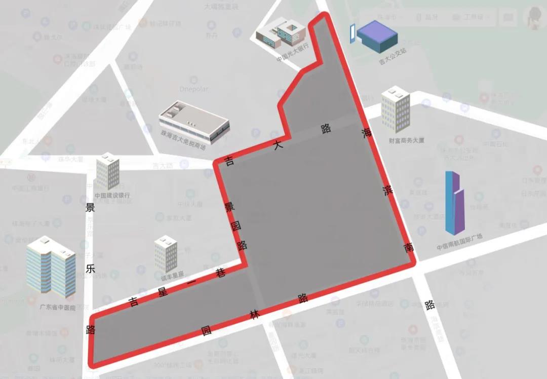 二、将香洲区吉大街道海滨南路以西、园林路以北、景乐路以东、吉星一巷以南、景园路以东、吉大路以南、光大国际贸易中心西北方向小巷至海滨南路(不含光大银行)所划定范围为封控区域,从7月26日凌晨6点起实行“只进不出,严禁聚集”管理措施,原则上每户限定人数在指定时间外出购置保障物资(暂定7天,具体视疫情防控情况动态调整)。