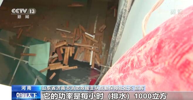山东省济南市消防救援支队战勤保障处处长 赵晖:我们的大功率排涝车它的功率是每小时(排水)1000立方米,截至目前我们已经连续作业近28个小时,已经排涝了3万立方米左右。