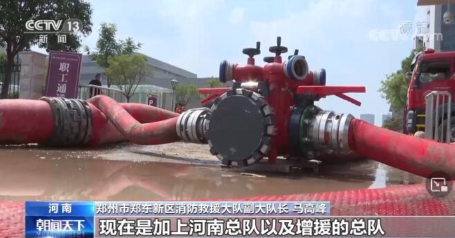 郑州市郑东新区消防救援大队副大队长 马高峰:现在是加上河南总队以及增援的总队一共有5个总队在这里,(排涝)设备一共分布到医院的西边、北边还有东边,一共是15个点。这个设备有远程供水系统8套、大型排涝设备7套。