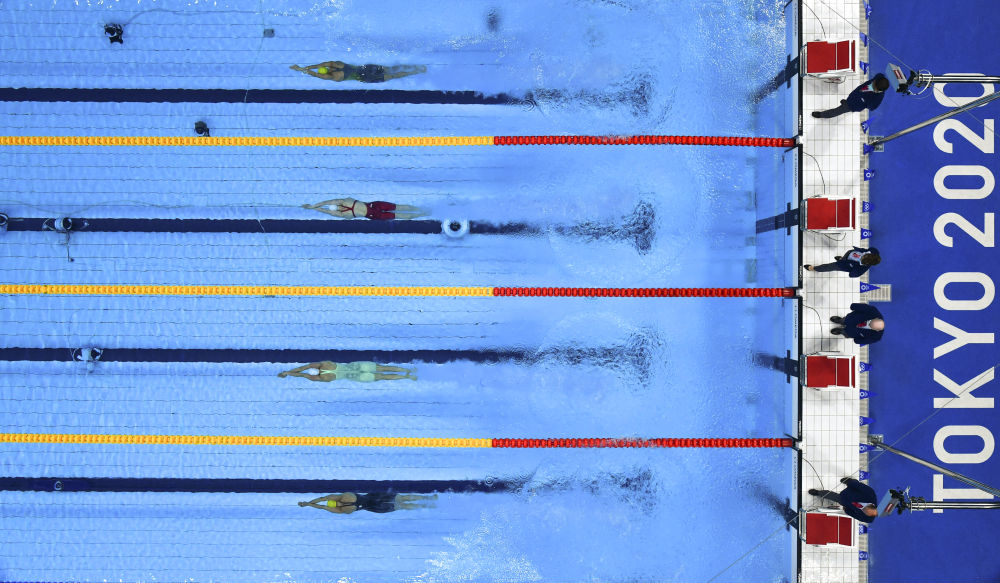 ↑ 张雨霏(上二)在比赛中。新华社记者 夏一方 摄