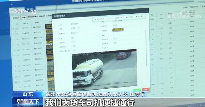 德州市交通运输综合执法支队支队长 杜守军:所有经过的车辆如果出现违章了,我们就记录在案,形成我们的电子信用台账。这样既起到警示教育的作用,又起到维护我们大货车司机便捷通行。
