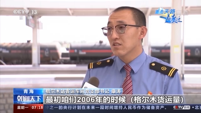 格尔木站客运车间党支部书记 康涛:最初咱们2006年的时候(格尔木货运量)可能是在十几万吨二十几万吨,现在平均年发送量在320万吨。旅客列车对数也增加了,再就是咱们进藏的旅程时间,随着提速、线路的改造,也相应缩短了。