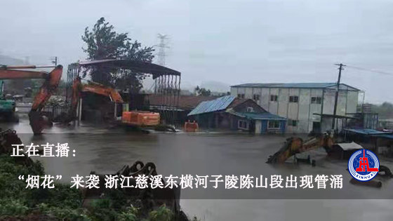 【正在直播:“烟花”来袭 浙江慈溪东横河子陵陈山段出现管涌】受台风“烟花”影响,26日上午,浙江慈溪东横河子陵陈山段出现管涌,水位上涨,河水倒灌,情况紧急。横河镇50余名民兵正在抢险。#新华社直播# 新华社的微博直播