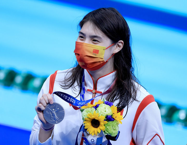 7月26日,张雨霏在颁奖仪式后。新华社记者 陈建力 摄