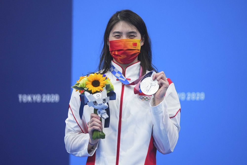 7月26日,张雨霏在颁奖仪式上。新华社记者 许畅 摄