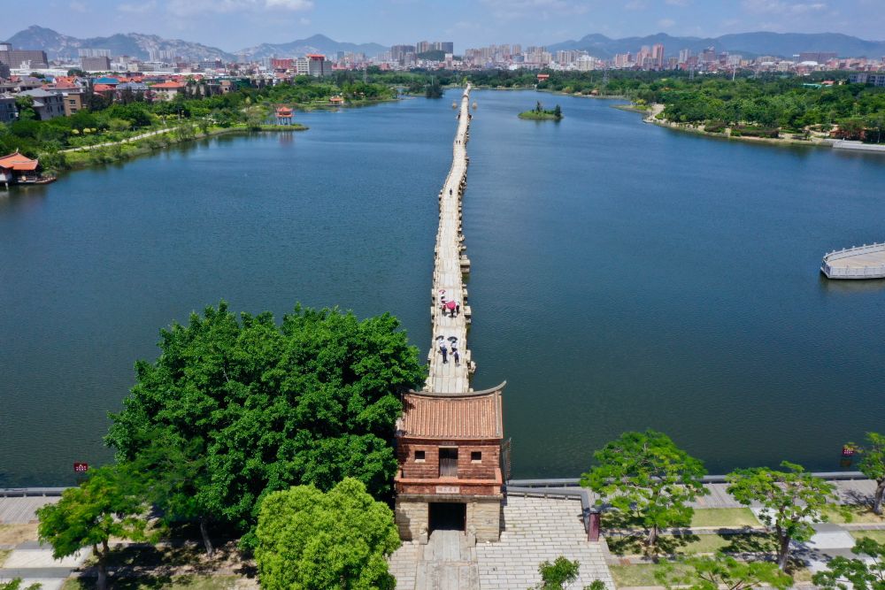 这是泉州晋江安海镇的安平桥(无人机照片,7月8日摄)。新华社记者 姜克红 摄