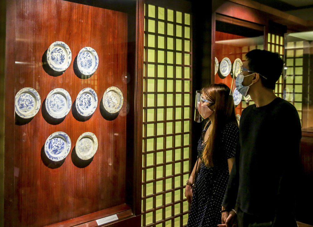 7月21日,游客在菲律宾国家人类学博物馆观赏中国陶瓷藏品。新华社发