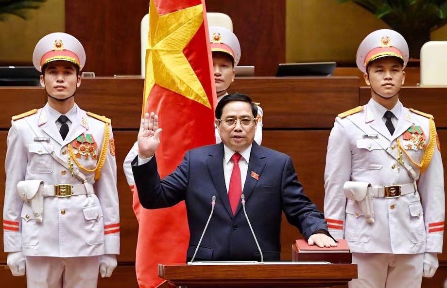 越南第十五届国会第一次会议7月26日下午选举范明政为越南政府总理,任期5年。范明政在当选后随即宣誓就职。范明政,原籍越南清化省,出生于1958年12月10日,1986年12月25日加入越南共产党。范明政于2016年当选越共第十二届中央政治局委员,曾担任越共中组部部长。