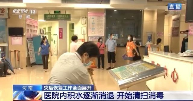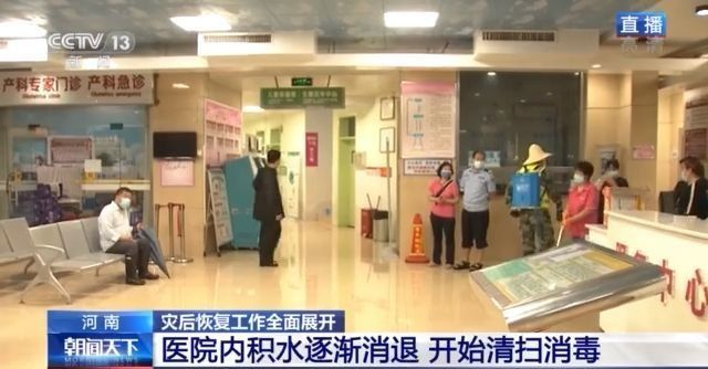 在新乡市妇幼保健医院,一楼大厅曾经最深时到达膝盖的积水现在已经在消退,医院工作人员正在紧急对整个一楼大厅进行清理工作,之后会对这里进行全面的消毒杀菌工作。医生介绍,在这些工作完成后,会把之前紧急转移到别的楼层的病人和设备再逐渐的转移回来。
