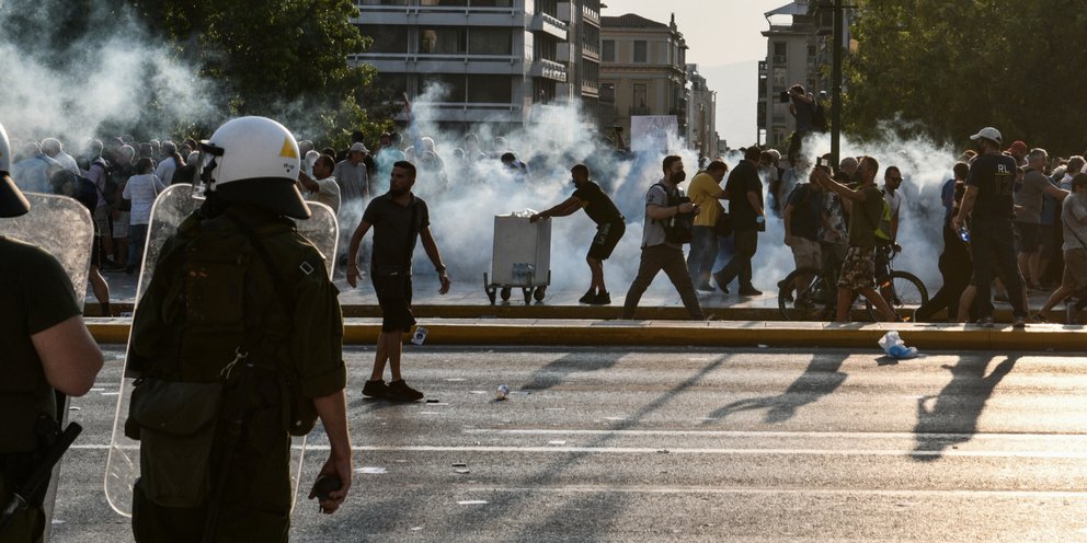 据希腊媒体报道,当地时间7月21日,希腊政府向议会提交了关于强制接种新冠疫苗的修正案。当天下午,雅典市中心出现了反对强制接种疫苗的示威和集会,部分抗议者与警方发生对抗和冲突。