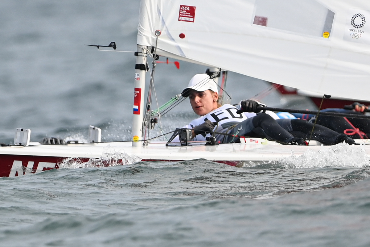 荷兰选手鲍梅斯特在女子单人艇激光雷迪尔级比赛中。新华社记者黄宗治摄