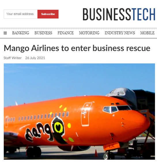 据南非媒体当地时间7月26日报道,继南非国有航空公司“南非航空”进入商业救援模式以后,另一家南非国有航空公司“芒果航空”宣布即将进入商业救援模式。