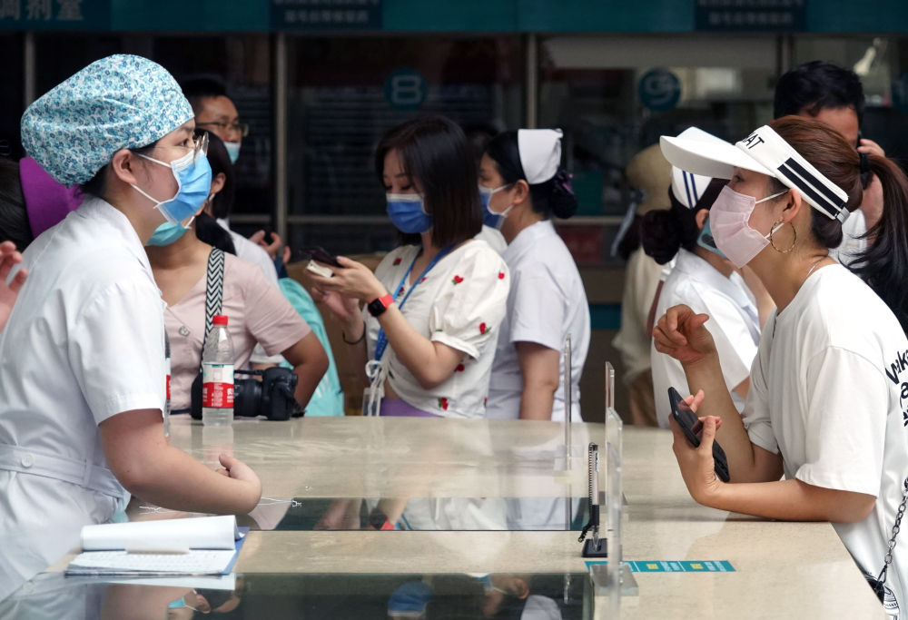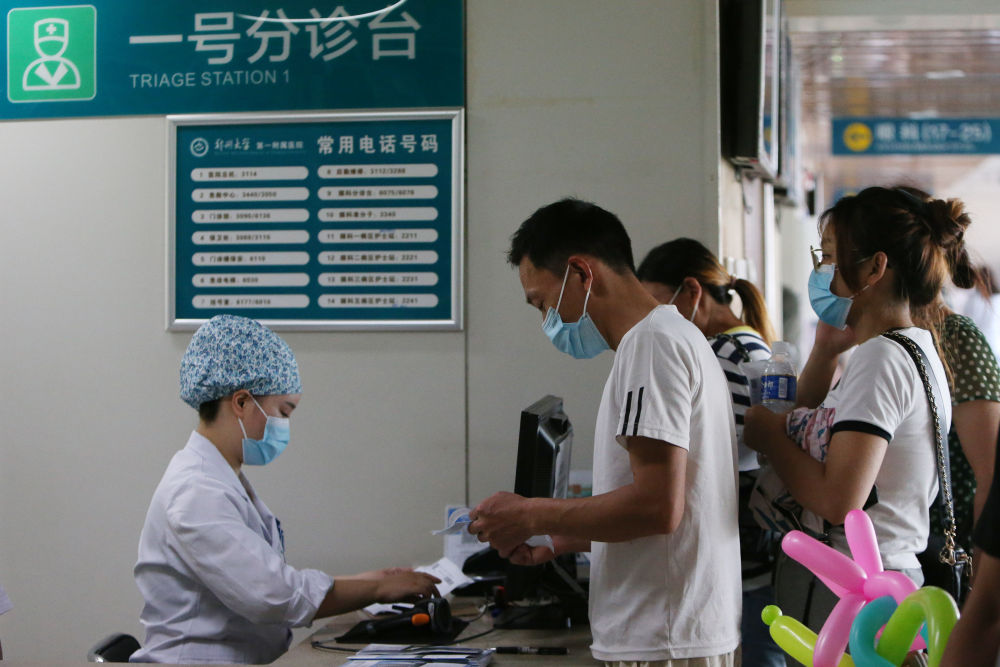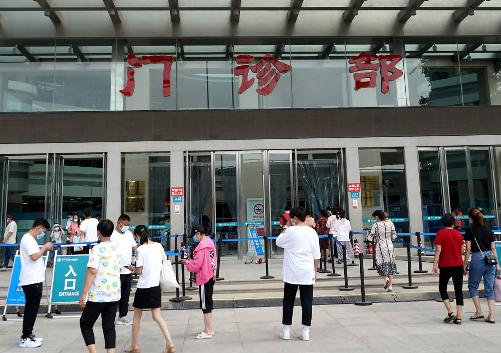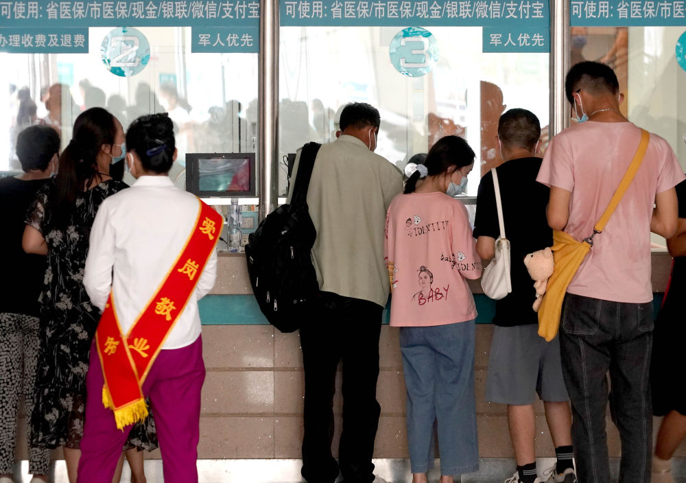 ↑7月26日,患者在郑大一附院河医院区排队缴费。