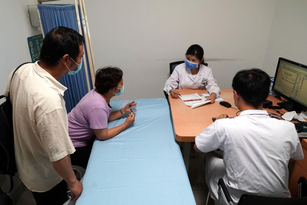 ↑7月26日,医生在郑大一附院河医院区与患者交谈。