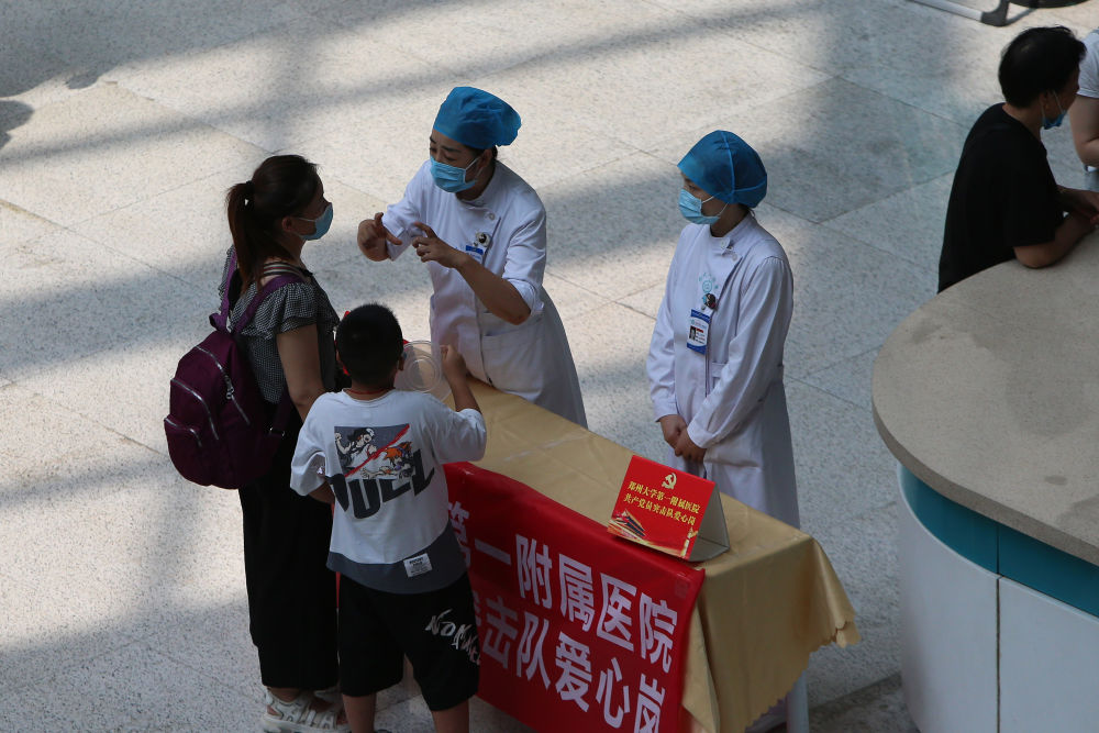 ↑7月26日,患者在郑大一附院河医院区爱心岗咨询信息。