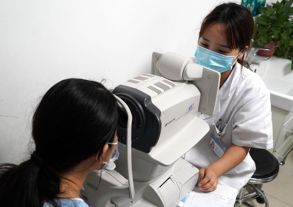 ↑7月26日,医生在郑大一附院河医院区眼科进行诊疗。