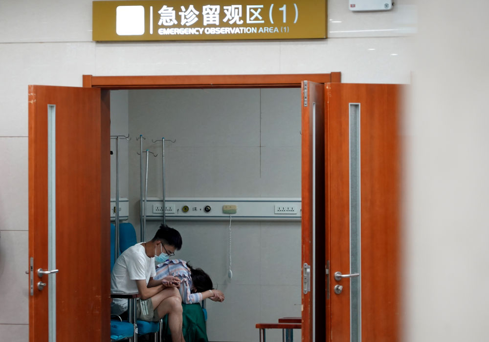 ↑7月26日,患者在郑大一附院河医院区急诊留观区等待。