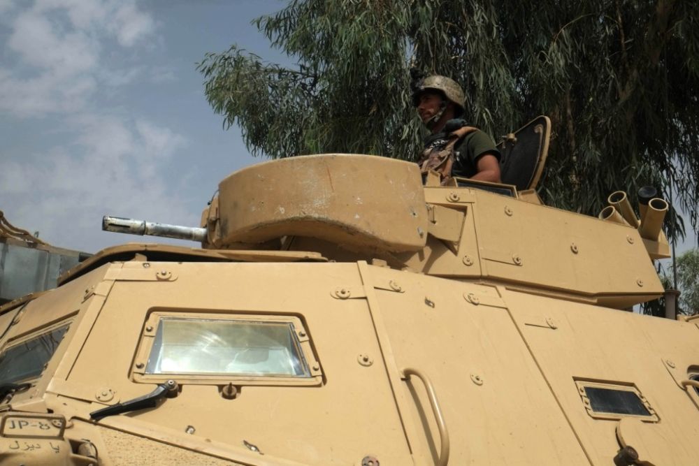 7月22日,阿富汗安全人员在朱兹詹省希比尔甘市参加与塔利班武装人员的战斗。(新华社发,卡瓦·巴沙拉特摄)