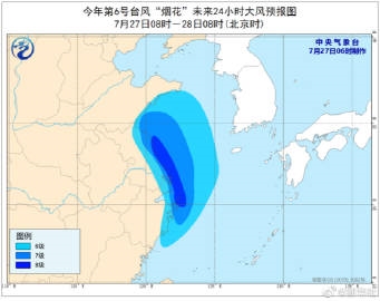 【#台风烟花将移入安徽境内# #苏皖沪鲁等地警惕强降雨#】记者从中央气象台了解到,预计27日下午到傍晚,台风“烟花”将移入安徽省内,29日以后转向,并于29日白天进入山东省内。受“烟花”影响,未来三天,上海、江苏、安徽东部和北部、山东、河南东部及华北东部等地将有明显降雨,公众需防范强降雨对交通出行的不利影响。(图片来源:中央气象台)