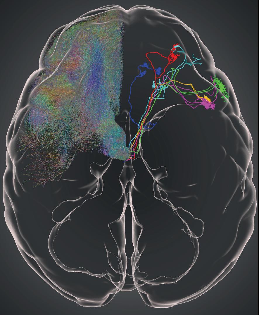 大脑功能是由其近千亿个神经细胞,以及细胞之间纤细而复杂的连接来实现的。要深入理解大脑的运转机制,需要将这些精密连接结构解析出来,就像给大脑绘制一幅三维高清地图。脑图谱解析是神经科学前沿研究领域,而对灵长类动物的脑图谱解析也是中国脑计划的一个重点研究方向。神经元通过轴突纤维输送信息,如果把这些纤维类比为道路和河流,那么大脑的尺寸就相当于整个地球的大小,绘制脑图谱就像要把地面上的大小道路以及河流的大小支流都测绘出来。而且因为大脑是一个三维结构,它的内部每个地方都有跟地球表面同样错综复杂的道路河流。绘制大脑图谱就是要把这样一个复杂的三维结构进行精细分解和描绘。