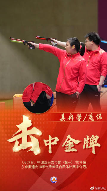 【祝贺!#庞伟姜冉馨摘得中国队第七金#】在刚刚结束的东京奥运会10米气手枪混合团体决赛中,中国组合庞伟/姜冉馨顶住压力,为中国代表团斩获第七金!#庞伟姜冉馨的标志性动作是单手插兜#,淡定的外表背后是实力的深沉,你们是当之无愧的冠军!#中国队加油#
