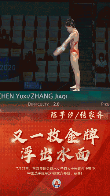 【祝贺!#00后张家齐陈芋汐完美夺冠#】在刚刚结束的东京奥运会女子双人十米跳台决赛中,中国梦之队两位00后妹妹张家齐/陈芋汐发挥完美,无可挑剔,为中国摘得第八金。“复制粘贴式”跳水,遥遥领先的第一。网友热评:#下饺子都比这水花大#。祝贺中国队!#中国队加油#