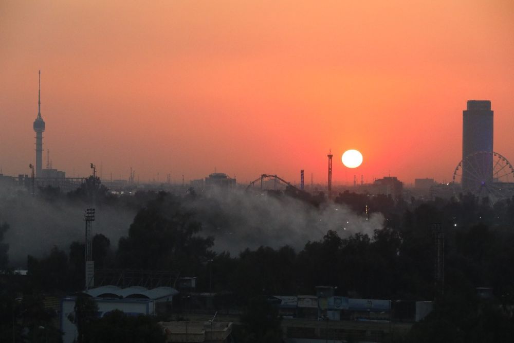 2月13日拍摄的夕阳下的伊拉克巴格达城市天际线。(新华社记者张淼摄)