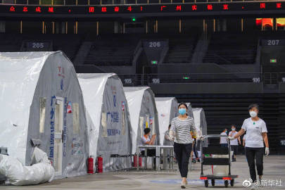 【#广州猎鹰号实验室驰援南京核酸检测#】曾在广州全员核酸检测中发挥重要作用的“猎鹰号”气膜实验室亮相南京青奥体育公园体育馆,其中3个气膜实验室已于26日搭建完成并开始检测,余下3个气膜实验室将于27日晚搭建完成。6个气膜实验室全部投入使用后,每日可检测18万管,如果采用混检模式,每日可筛检180万人次。(记者李博、陈席元)