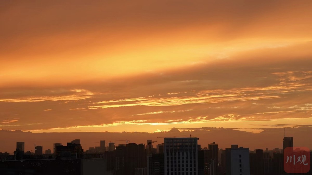 今天傍晚,成都的晚霞十分绚烂。金色的光芒笼罩在城市上空。成都人的朋友圈里被夕阳刷屏了!
