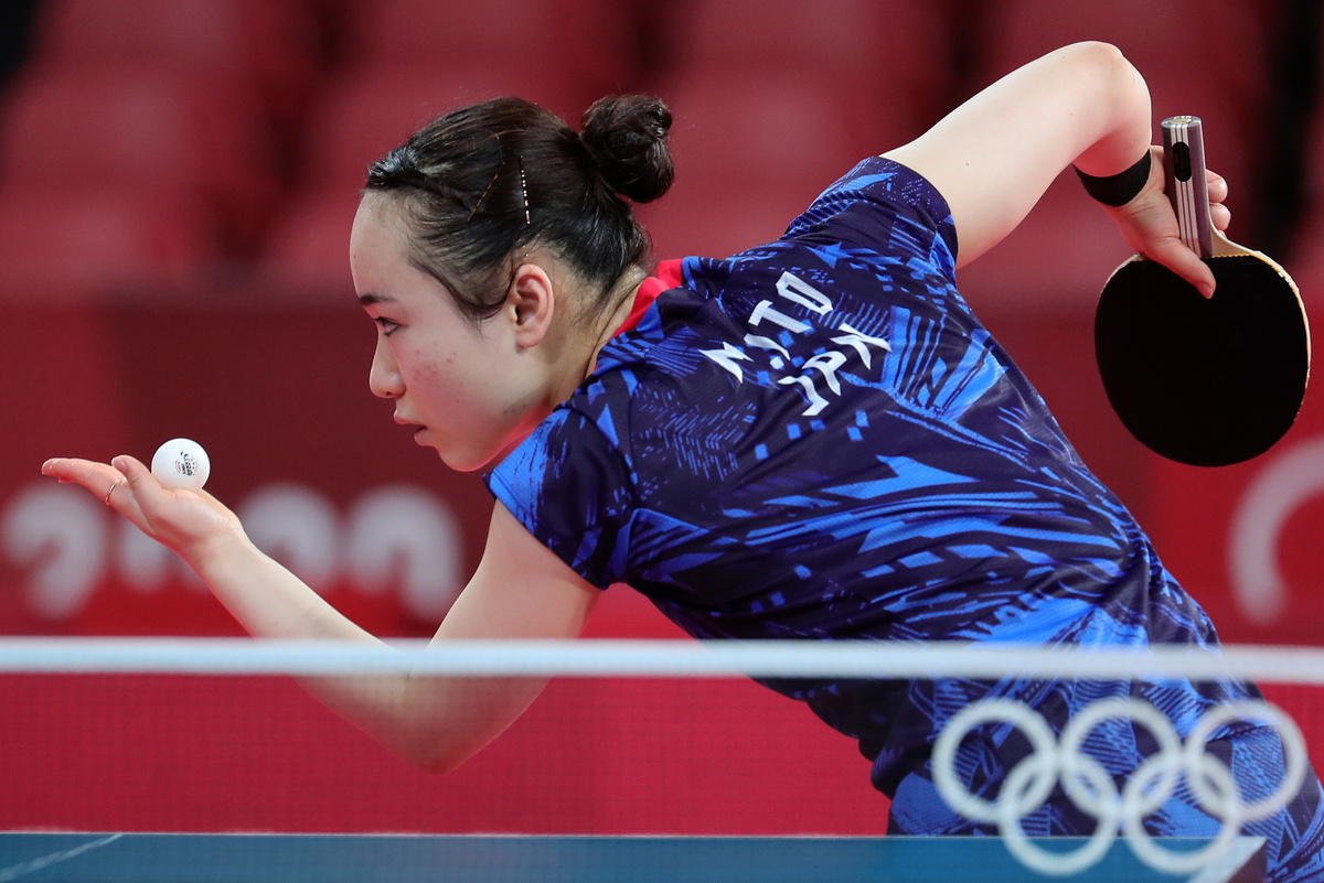 7月27日,伊藤美诚在比赛中发球。新华社记者 王东震 摄