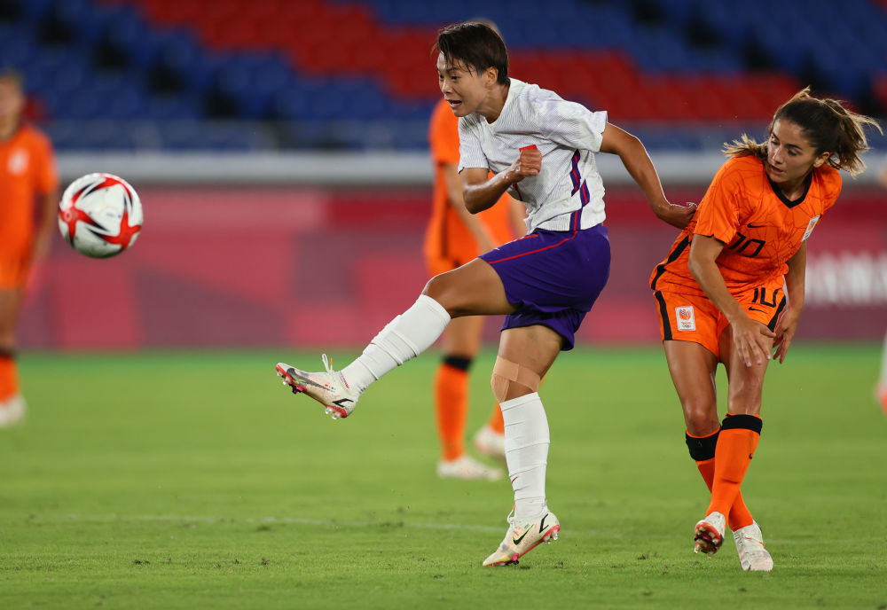 7月27日,中国队球员王霜在比赛中射门。新华社记者 兰红光 摄