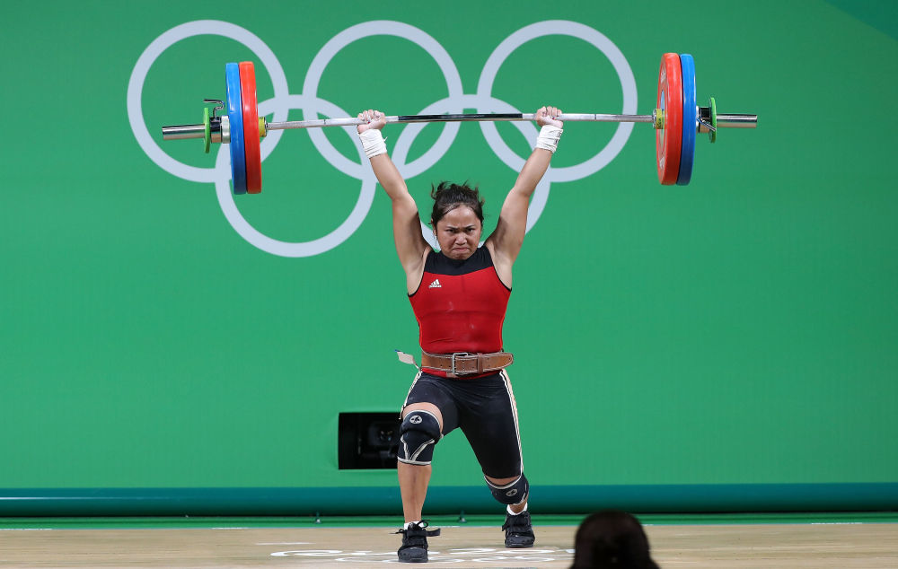 资料图:2016年8月7日,菲律宾选手迪亚兹在挺举比赛中。新华社记者 李明 摄