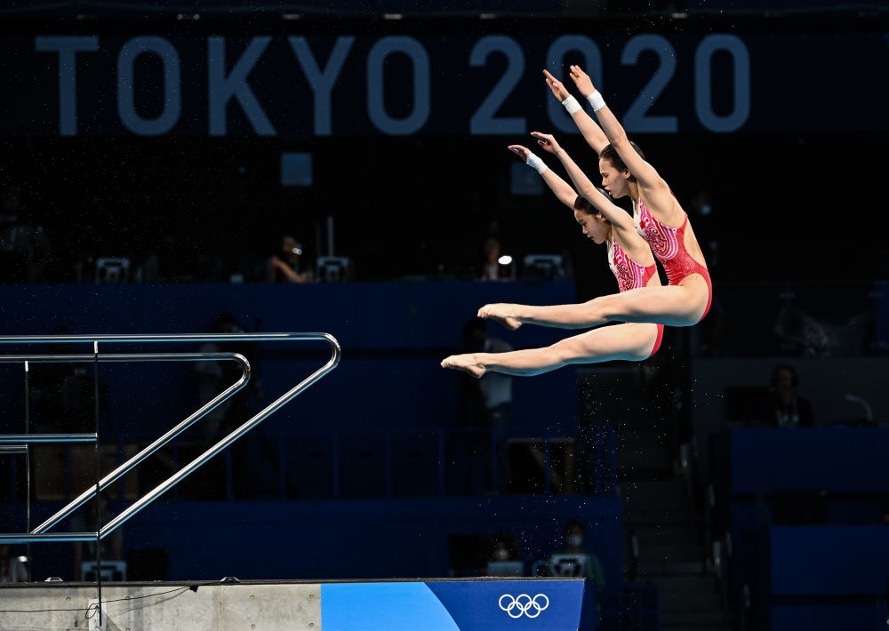 7月27日,中国选手陈芋汐/张家齐在比赛中。新华社记者 王婧嫱 摄