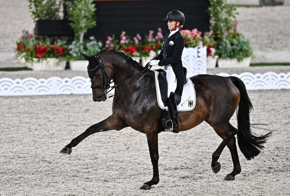 52岁的伊莎贝尔·维特当天的比赛堪称完美,人马合一,飒爽优雅,气定神闲,裁判给她打出了2740.5的高分。而她的队友、世界排名第二的杰西卡·冯·布雷多-维恩德尔同样以无可挑剔的表现获得全场最高的2785.5分。最终,德国队以8178的总分夺冠。