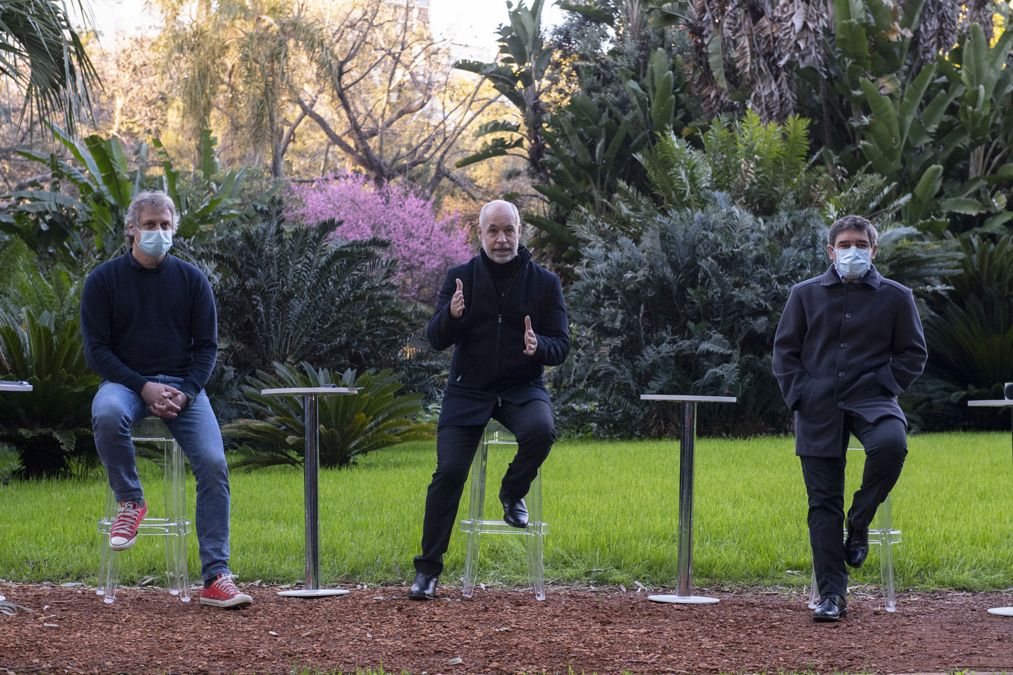 △布宜诺斯艾利斯市市长拉雷塔(中)宣布最新防疫政策(图片来源:阿根廷美洲通讯社)