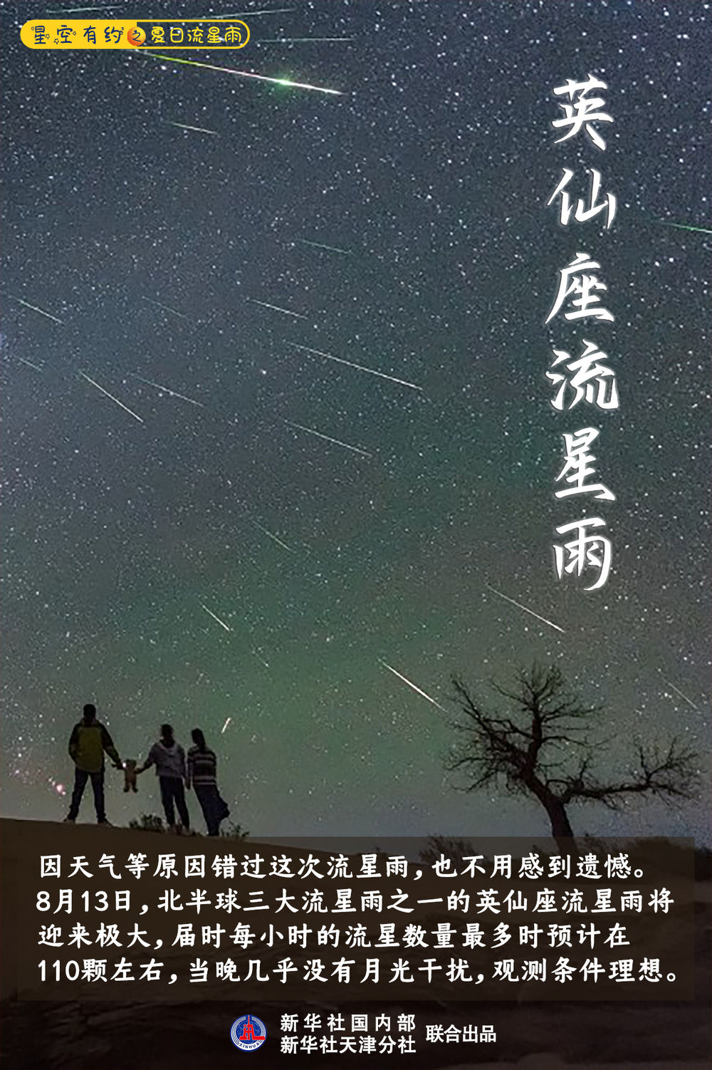 因天气等原因错过这次流星雨也不用感到遗憾。“8月13日,北半球三大流星雨之一的英仙座流星雨将迎来极大,届时每小时的流星数量最多时预计在110颗左右,当晚几乎没有月光干扰,观测条件理想。”宋媛媛说。