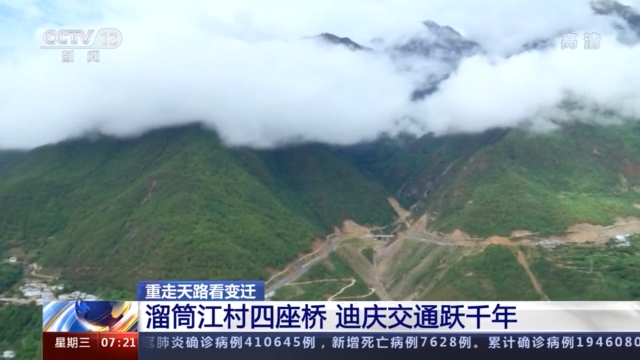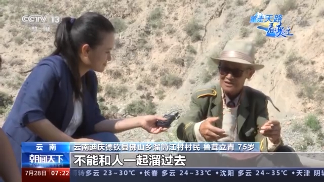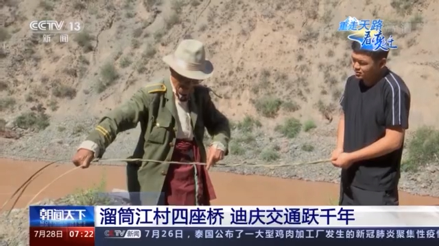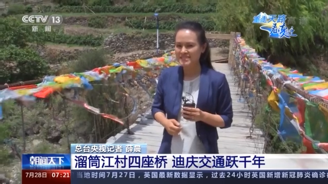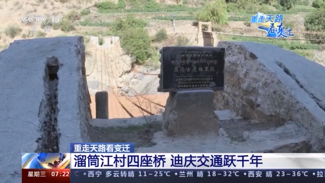 记者 薛晨:我现在所在的位置是云南德钦溜筒江村的澜沧江上,这里自古以来就是茶马古道的咽喉地段,是康藏入滇的门户,也是滇藏贸易的中心。这里一共修建了4座桥,分别是溜筒江大桥、溜索桥、普渡桥和普渡新桥,它们分别修建于不同的历史时期,见证了当地各族人民生活上发生的翻天覆地的变化。