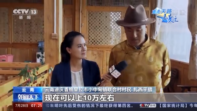 云南迪庆香格里拉市小中甸镇联合村村民 扎西平措:像以前的话我们就挣个几万块钱(一年),现在可以上10万左右,比以前多挣好几万。